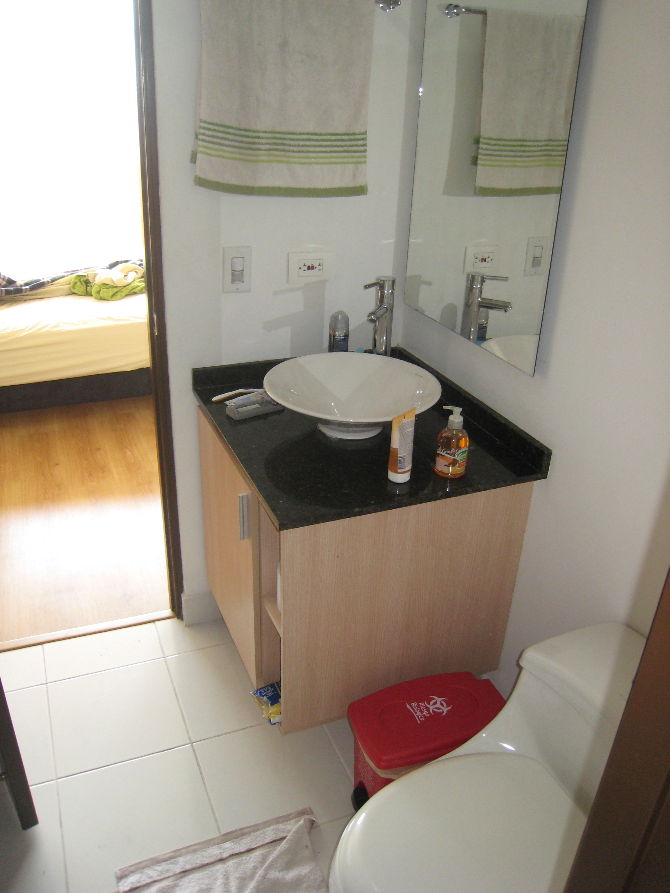 Unlike the bathroom I had in Buenos Aires, in this one, you can’t flush toilet paper (which is true of almost every bathroom I’ve been to in South America), so the little red bin with the biohazard symbol on the top is for used toilet paper, which I have to bag up and toss when it gets full. Let’s all say, “Eeeeew!” The fun part of the bathroom is that the light switch is motion activated, so it turns on automatically when you walk in. I like to walk in and pretend I just walked into a surprise party.